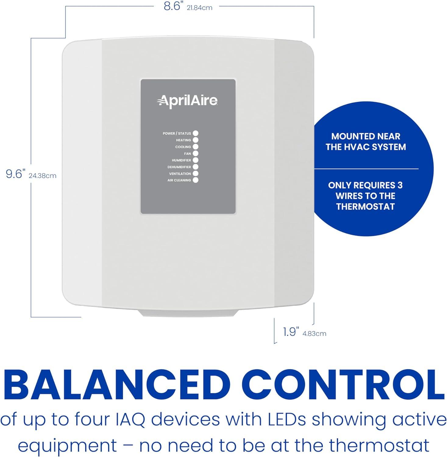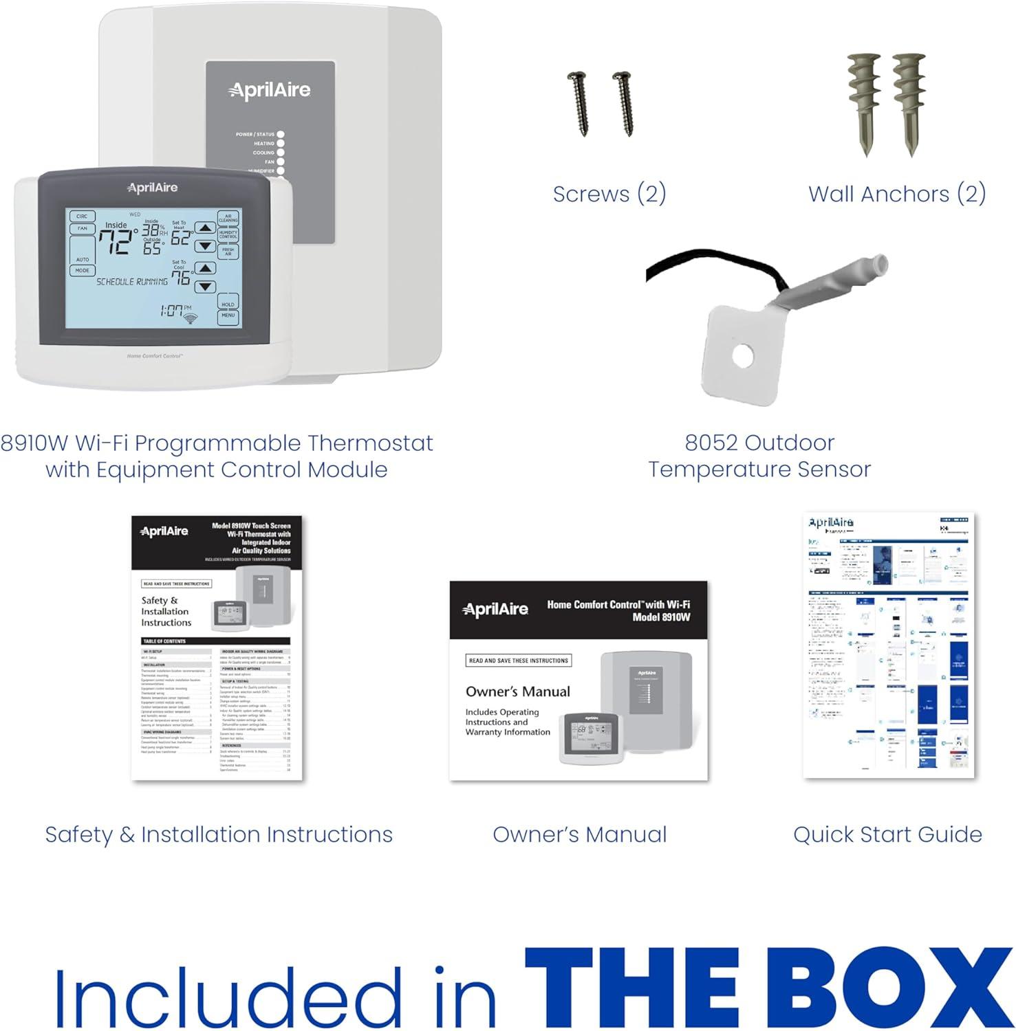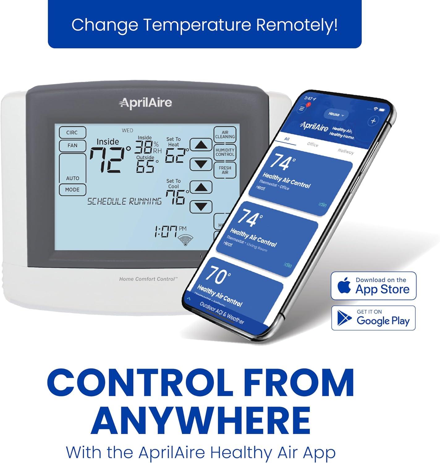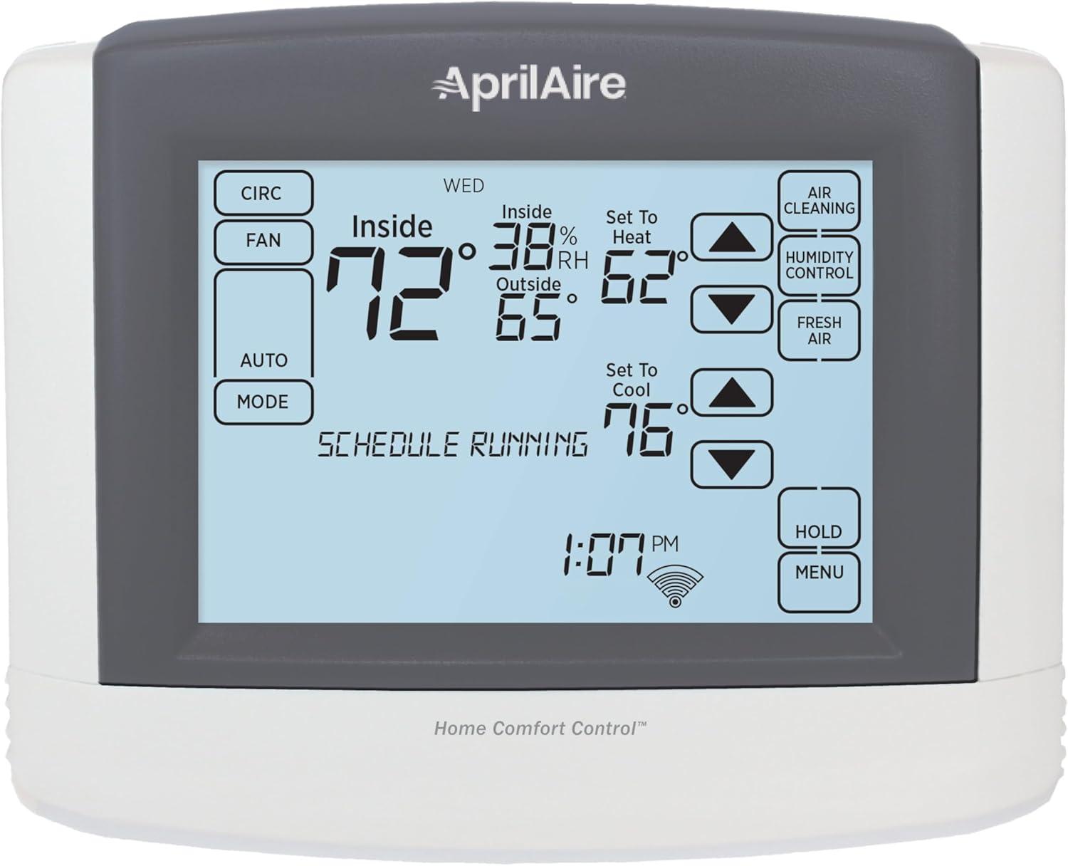 Monitoring and controlling your home's Indoor Air Quality is a breeze with the AprilAire 8910W Wi-Fi Programmable Touchscreen Thermostat. With features like automatic humidifier and dehumidifier control, automatic air cleaning with an AprilAire air purifier, and temperature control, this thermostat will ensure that the air in your home is clean, fresh, and comfortable for you and your family while integrating with your installed AprilAire whole-house Indoor Air Quality products. The AprilAire Wi-Fi Programmable Thermostat makes it easy to control Indoor Air Quality anywhere and anytime too, all from the convenience of your smart phone or tablet with the AprilAire Wi-Fi Thermostat App. Reduce your energy costs with the push of a button without sacrificing comfort with multiple hold options. Experience the health benefits of proper Indoor Air Quality with the AprilAire Wi-Fi Programmable Thermostat today.