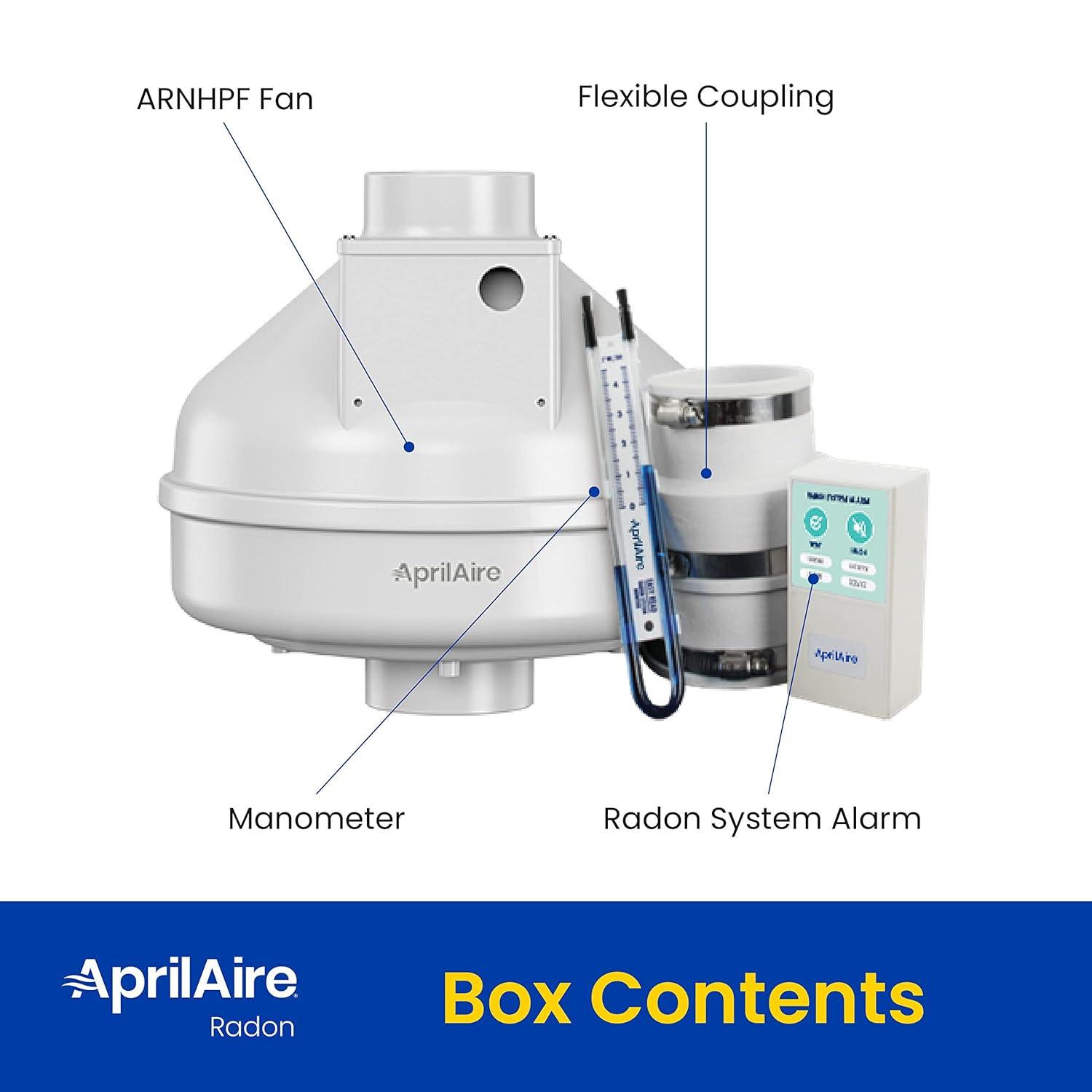 Aprilaire ARNHPF Quiet Energy Efficient Radon Mitigation Fan for Basement, Crawlspace or Slab Application, Indoor/Outdoor, Moderate to Tight Soils(Radon Mitigation Kit)