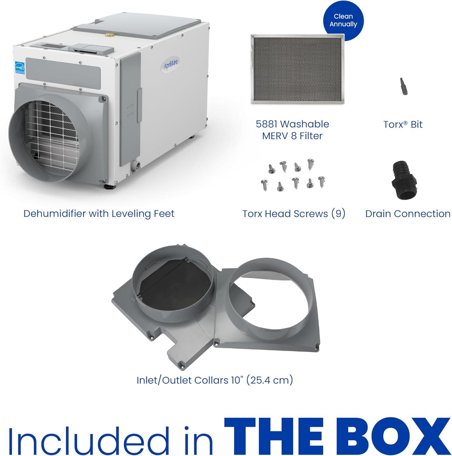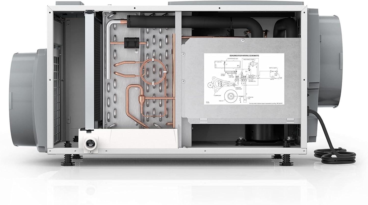 COMPLETE INSTALLATION BUNDLE: Skip the hardware store—everything you need is included: hanging kit, drain hose kit, condensate pump, pump bracket, and MERV 11 Filter. Designed for easy installation in basements, crawl spaces, or whole-home HVAC systems.