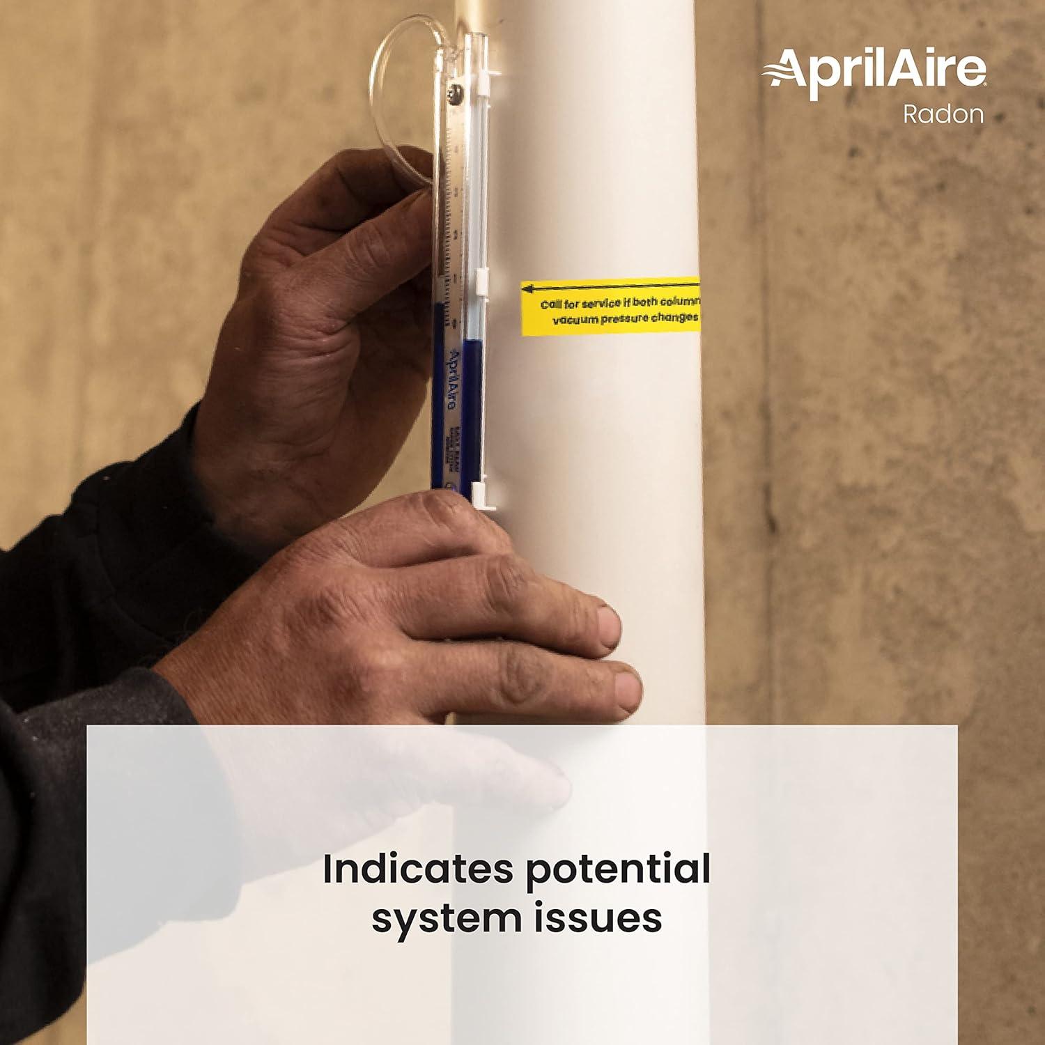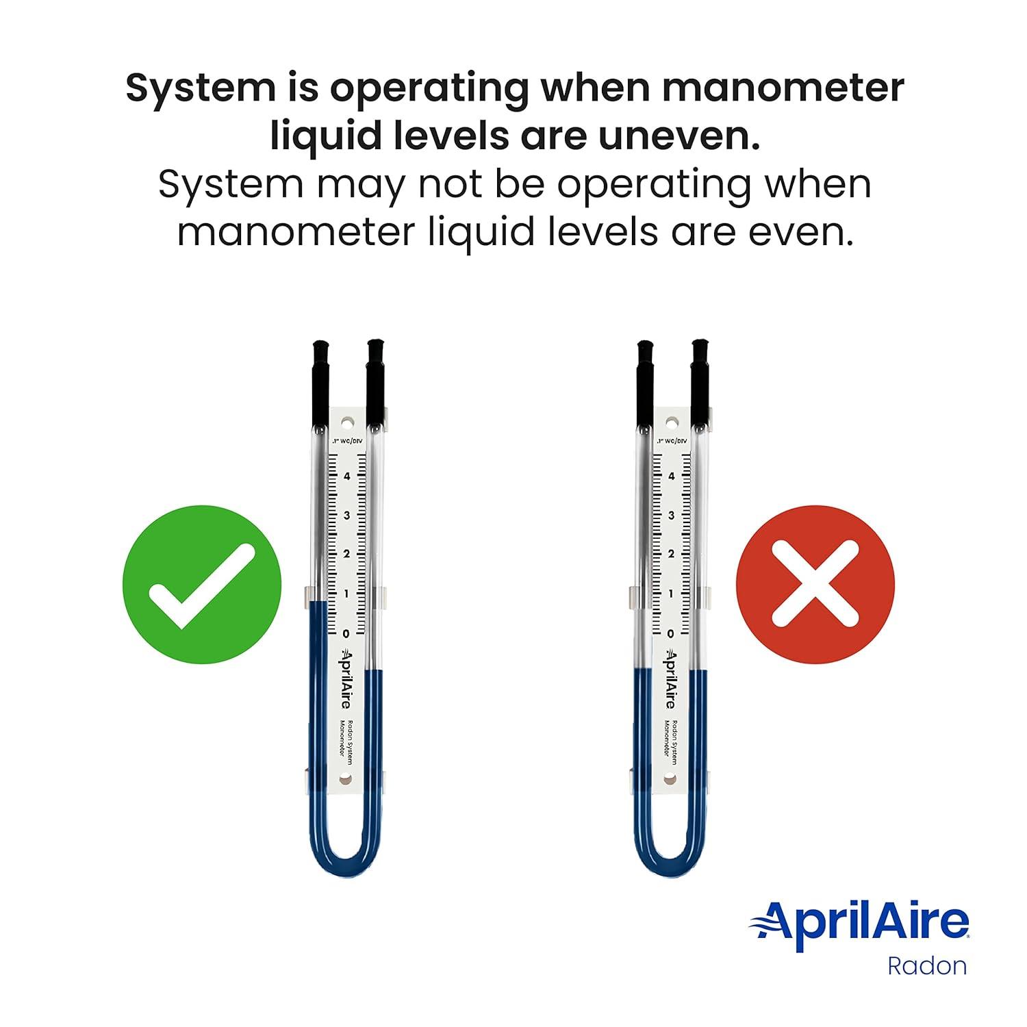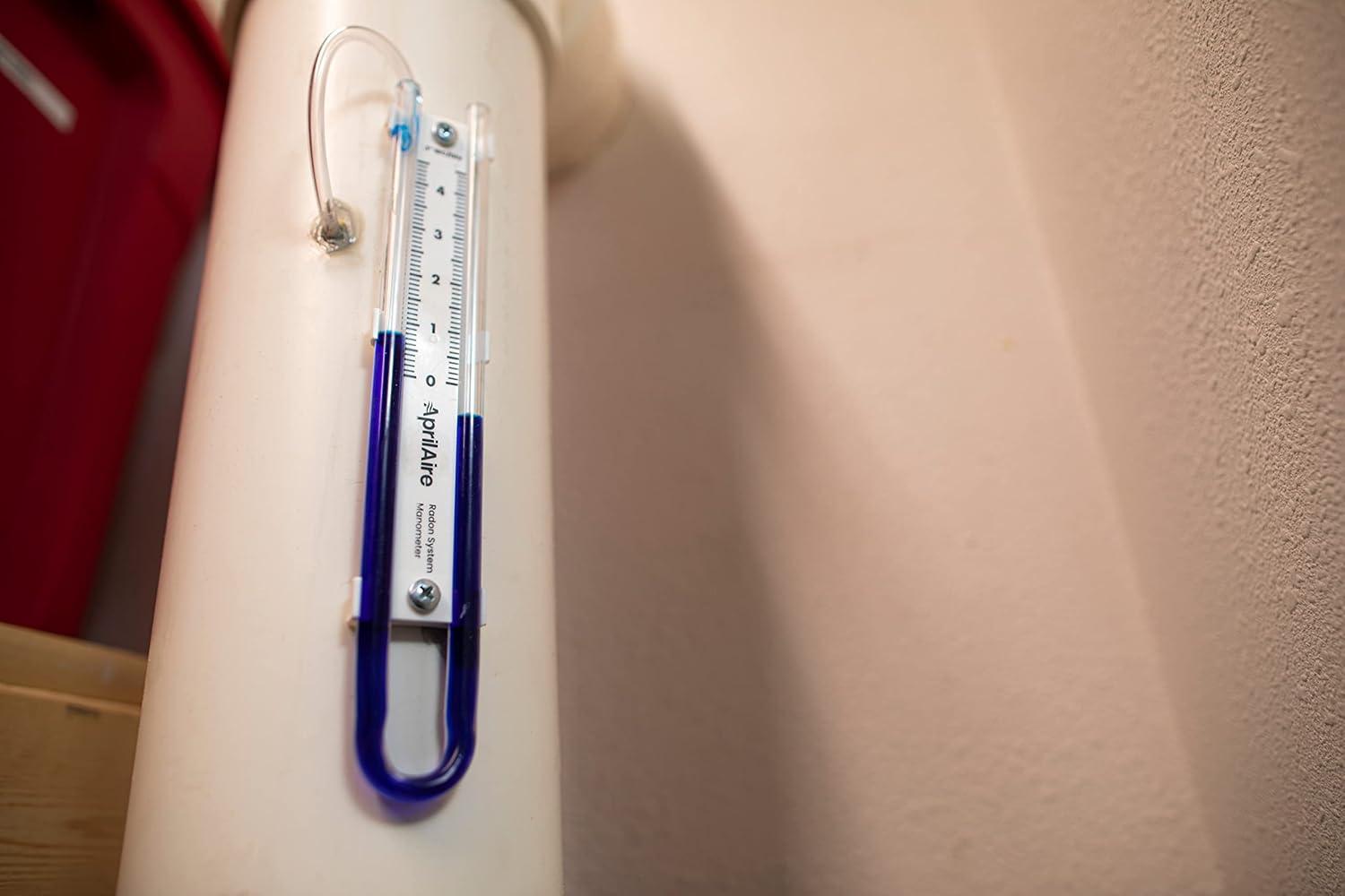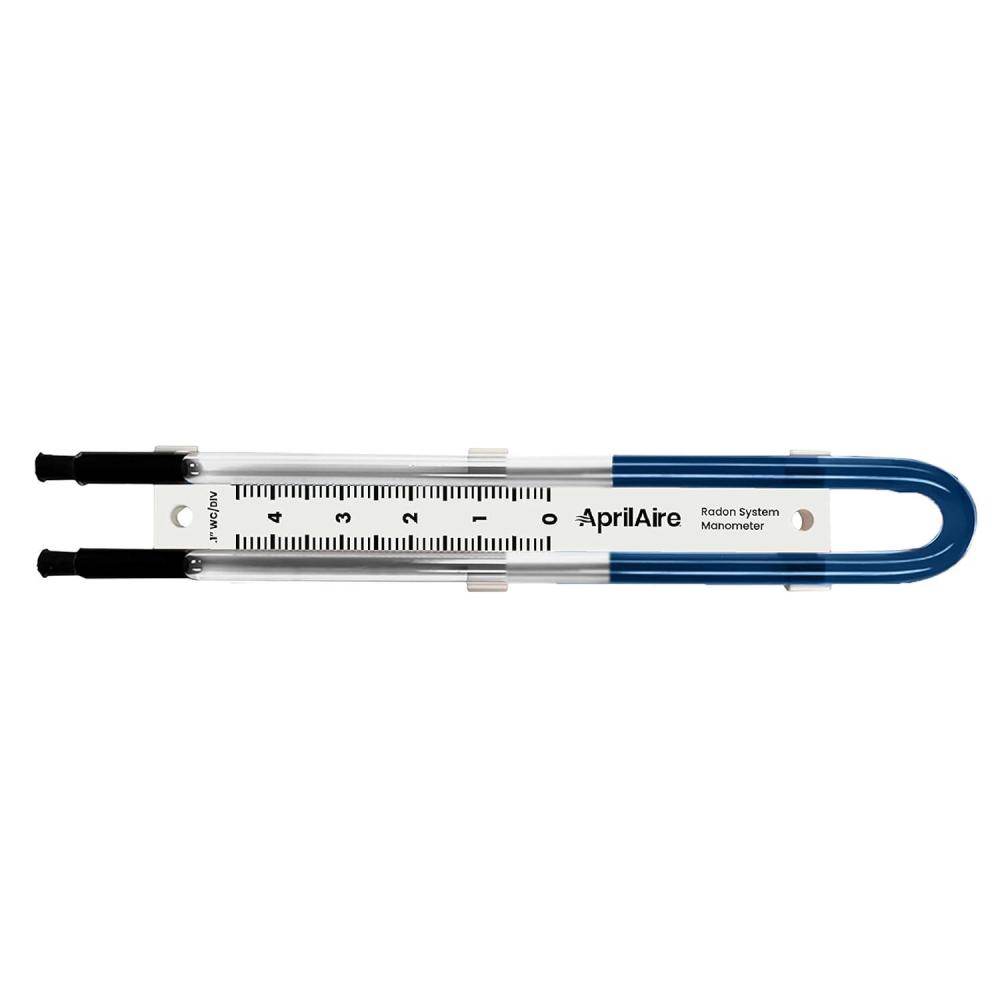 AprilAire's U-tube manometer provides a visual indication of vacuum pressure. Mounts to the outside of PVC pipe on a radon mitigation system and measures vacuum pressure in real time, helping to indicate potential issues with the fan. It can serve as a secondary indicator that vacuum pressure has changed in the event of a system alarm going off, helping to confirm that it’s not a false alarm. What's in the box: 0-5″ manometer, radon system stickers, operating, monitoring and maintenance manual, tube, two screws, and resealable plastic bag. Compatible with AprilAire ARN15F, ARN25F and ARNHPF Radon Mitigation Fans.