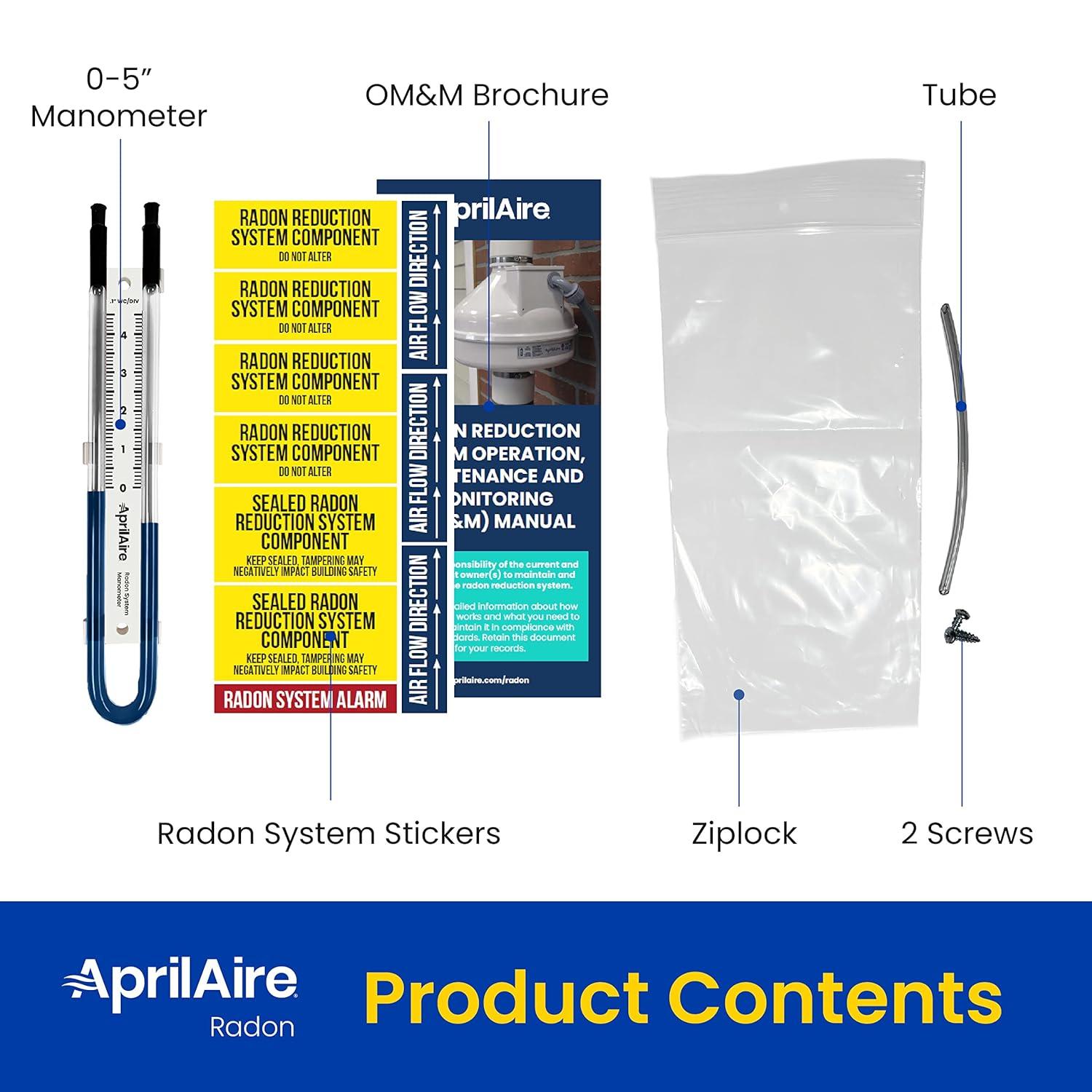 EVERYTHING NEEDED FOR INSTALLATION – package includes 0-5″ manometer, radon system stickers, operating, monitoring and maintenance manual, tube, two screws, and resealable plastic baggie
