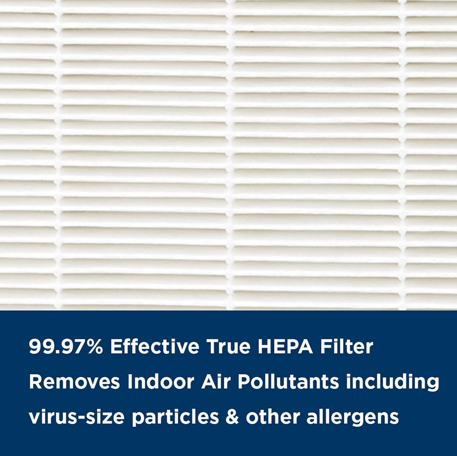 CAPTURES UP TO 99.97% OF AIRBORNE ALLERGENS 0.3 microns and larger passing through the True HEPA filter, including pollen, pet dander, mold spores, and other airborne impurities